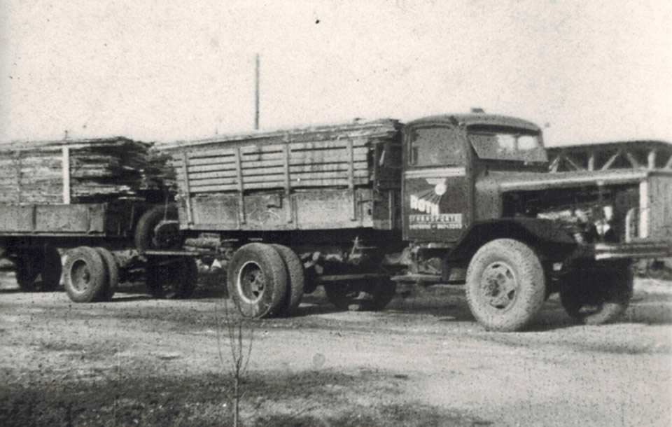 Der Neuaufbau des Fuhrunternehmens erfolgte im Jahr 1945 durch LKWs mit Holz und Brikettgenerator. In erster Linie wurden damals Medikamente und Lebensmittel wie Mehl für Auermühle, sowie Fisch für die Firma Battermann und Warenlieferung für Kaiserskaffee transportiert. Auch begann der Transport von Braun- und Steinkohle und Hoch- und Tiefbaumaterial. Die Fahrzeuge wurden mit der Zeit auf Benzin und Dieselmotoren umgestellt.